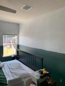 A few months later I decided the accent wall just made the room feel half-finished. Maybe a color blocked wall would make things better? I had a lot of leftover green paint and the kids were at school so I went for it.