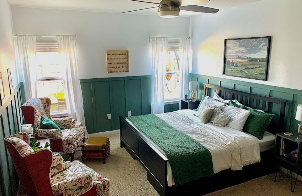 What I liked the most in all of the examples I saw was a dark color on the bottom half of the wall and a light color up top. I still liked the idea of incorporating green in my bedroom, but I wanted to lighten it up a bit.
